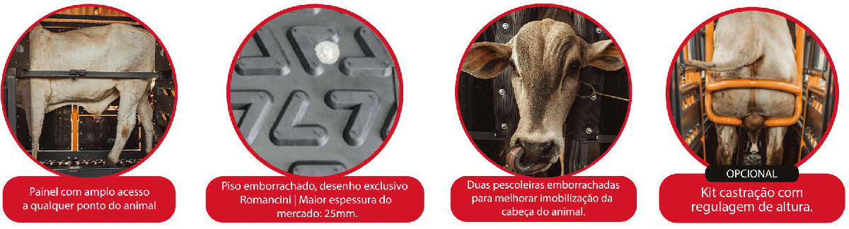 • Contentores laterais modelo americano com ajuste inferior “catraca” e superior “pistão auto-travante”.
