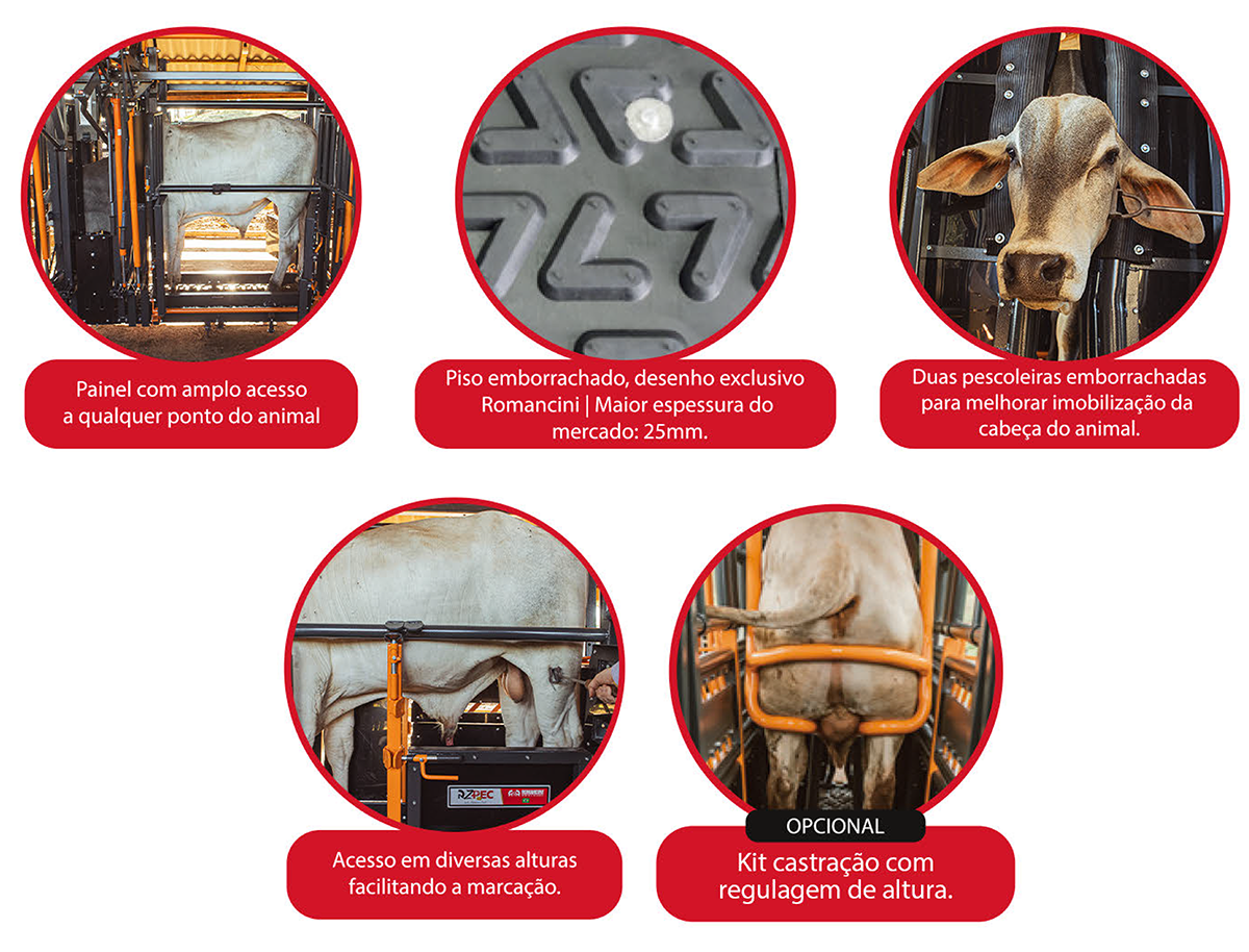 - Contentores laterais modelo americano com ajuste inferior “catraca” e superior “pistão auto-travante”.
