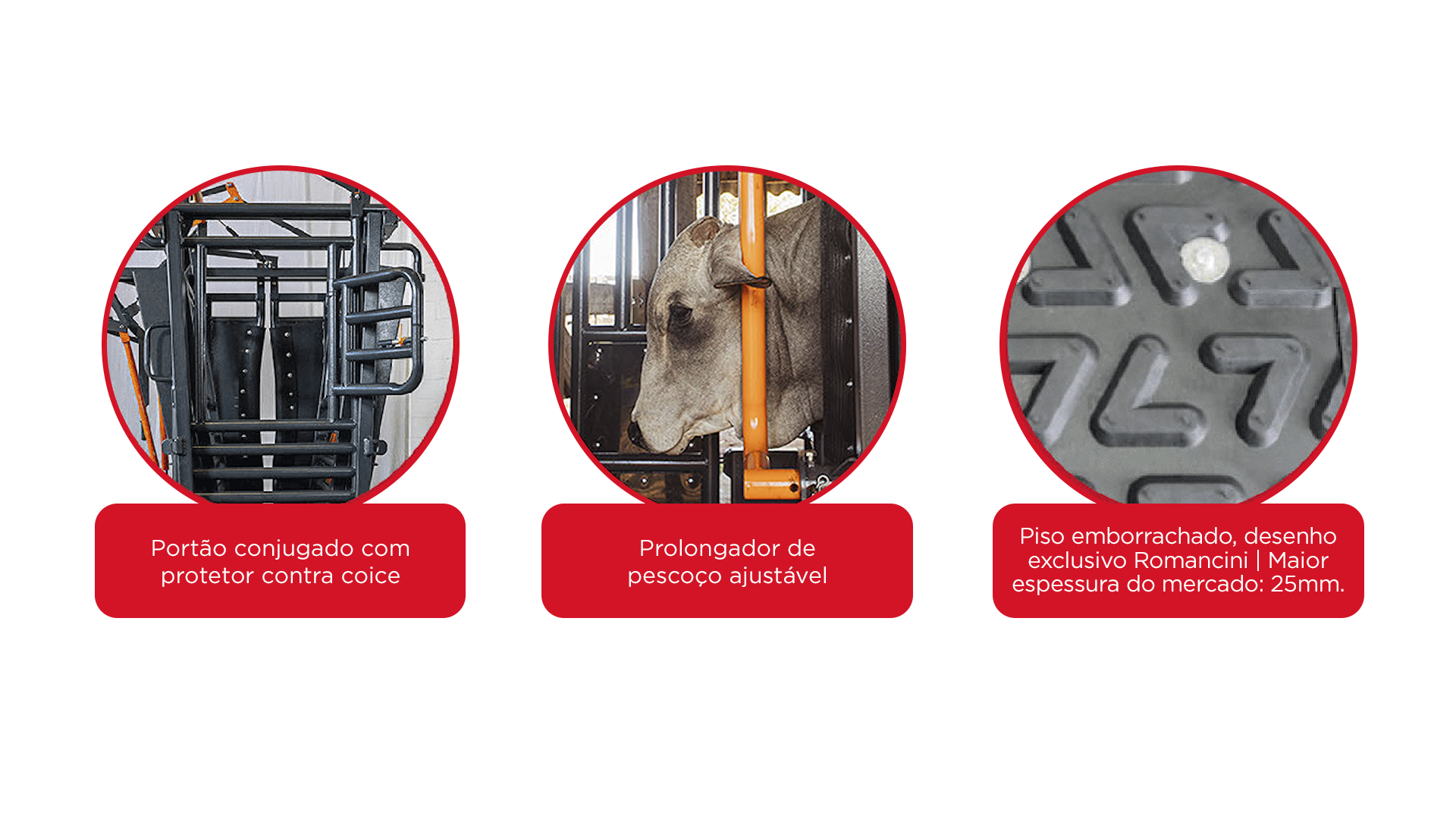 • Prendedor de pescoço (pistão auto-travante), com prolongador ajustável de 20, 25 e 30cm.